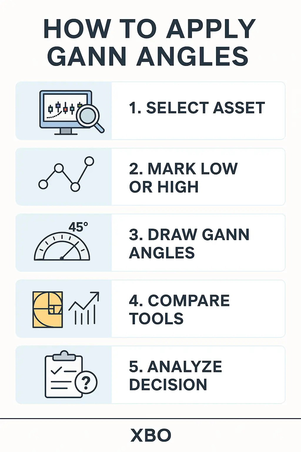 שיטת גאן | גיאומטריה, זוויות, מחזורים | כלי ויזואלי להבנת מגמות; גישה יצירתית | לא מדויק מדעית; תלוי בפרשנות | מוגבל – מתאים ככלי משלים בלבד |